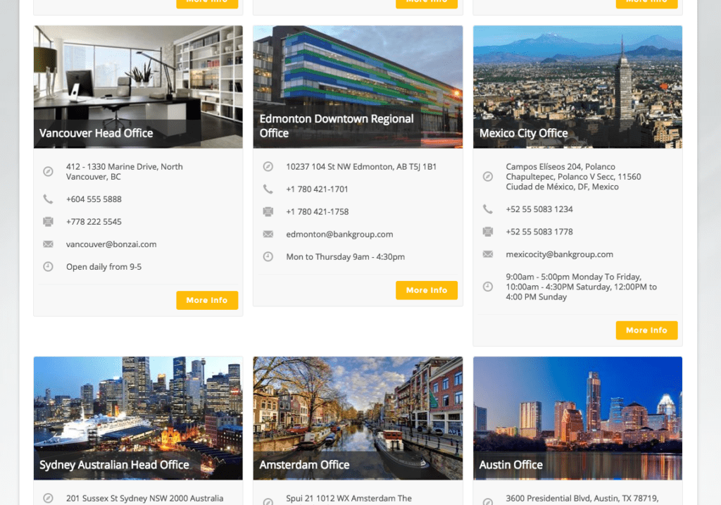 This one is very common. Let’s look at the design of the Bonzai Locations Directory, for example.